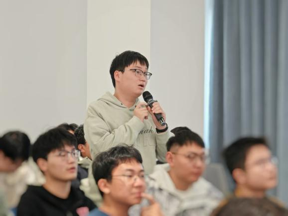 随后的讨论环节气氛热烈,同学们纷纷就自己的研究方向选择、学术问题向梁彦教授请教。梁教授耐心解答,鼓励同学们要将个人发展融入国家大局,面向国家战略领域开展科研创新,勇于开辟新方向、闯无人区,毕业后到祖国最需要的地方去建功立业;同时,他强调要沉得住气、耐得住寂寞,坚守自己的研究方向,以钉钉子精神,勤奋耕耘,久久为功,方能收获学术研究的硕果;同时,要注重数理基础能力的夯实,不能只将复杂的神经网络当模块和黑盒来使用,要将其层层拆解,清晰地理解这一前沿技术的核心原理,才能把它用好。