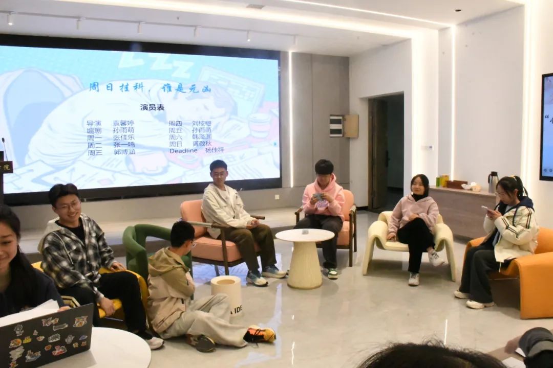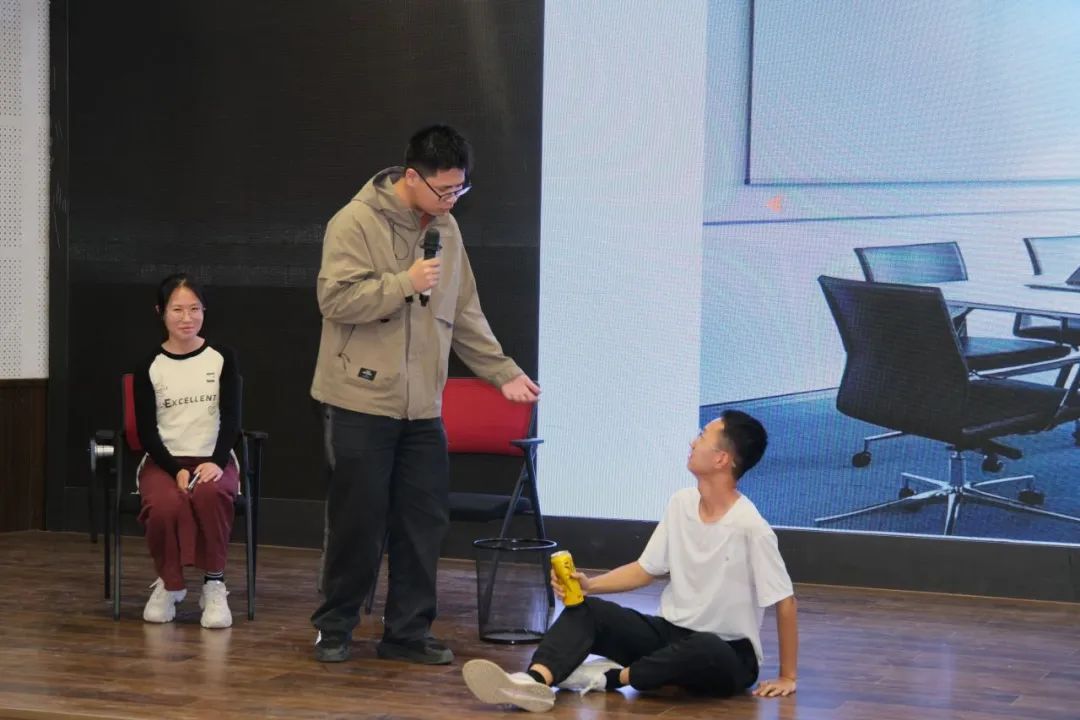 此次心理剧创演大赛,公司高度重视,比赛前期,公司彩虹心理协会统筹组建《周日挂科,谁是元凶》与《猫学长》两支队伍进行准备并均进入复赛。《周日挂科,谁是元凶》通过将抽象的时间具化为人物形象,深入探讨了拖延习惯、责任分配等校园常见问题。《猫学长》以校园中的猫为视角,展现了员工群体关于学业、情感、人际关系等方面的青春困惑与心理特征。