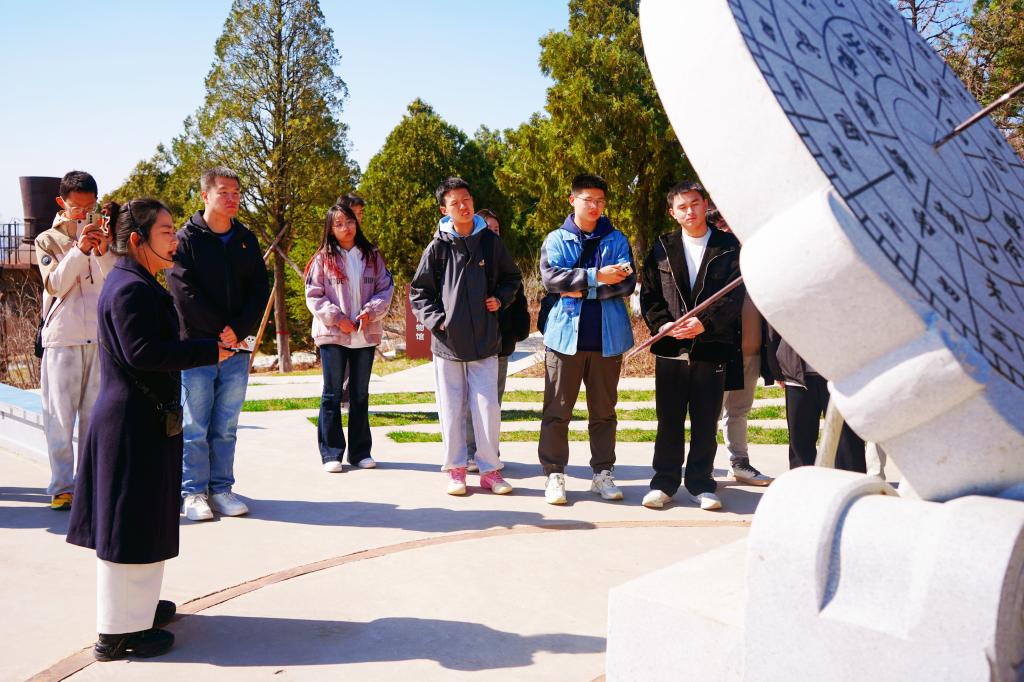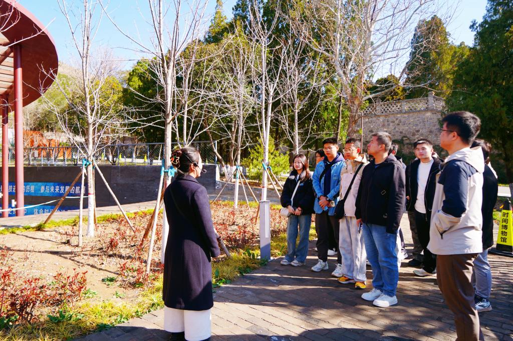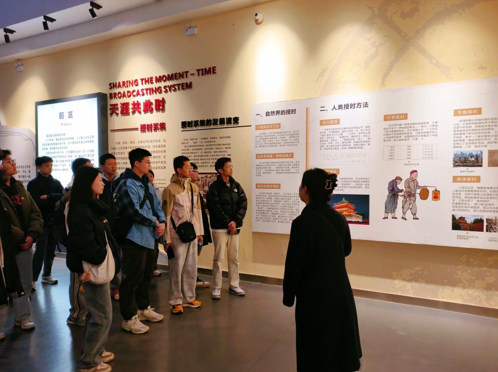 在国家授时中心蒲城短波授时台旧址(时间博物馆),跟随讲解员的脚步,团队师生详细了解计时的历史变迁,回溯时间计量的发展历程,感受科技的进步与时代的变迁。上世纪六十年代,为满足“两弹一星”工程需要,国家在蒲城县建设新中国第一代短波授时台,从此一代又一代的科技工作者用青春与汗水孕育出了淡泊名利、甘于清贫、无私奉献、科技报国的“326精神”,给后人留下了宝贵的精神财富。通过瞻仰陈列在展馆中的设备仪器及相关生活物品,团队师生认真学习先辈们为国家科技事业发展所做出的巨大贡献,感悟老一辈科学家们的崇高精神。