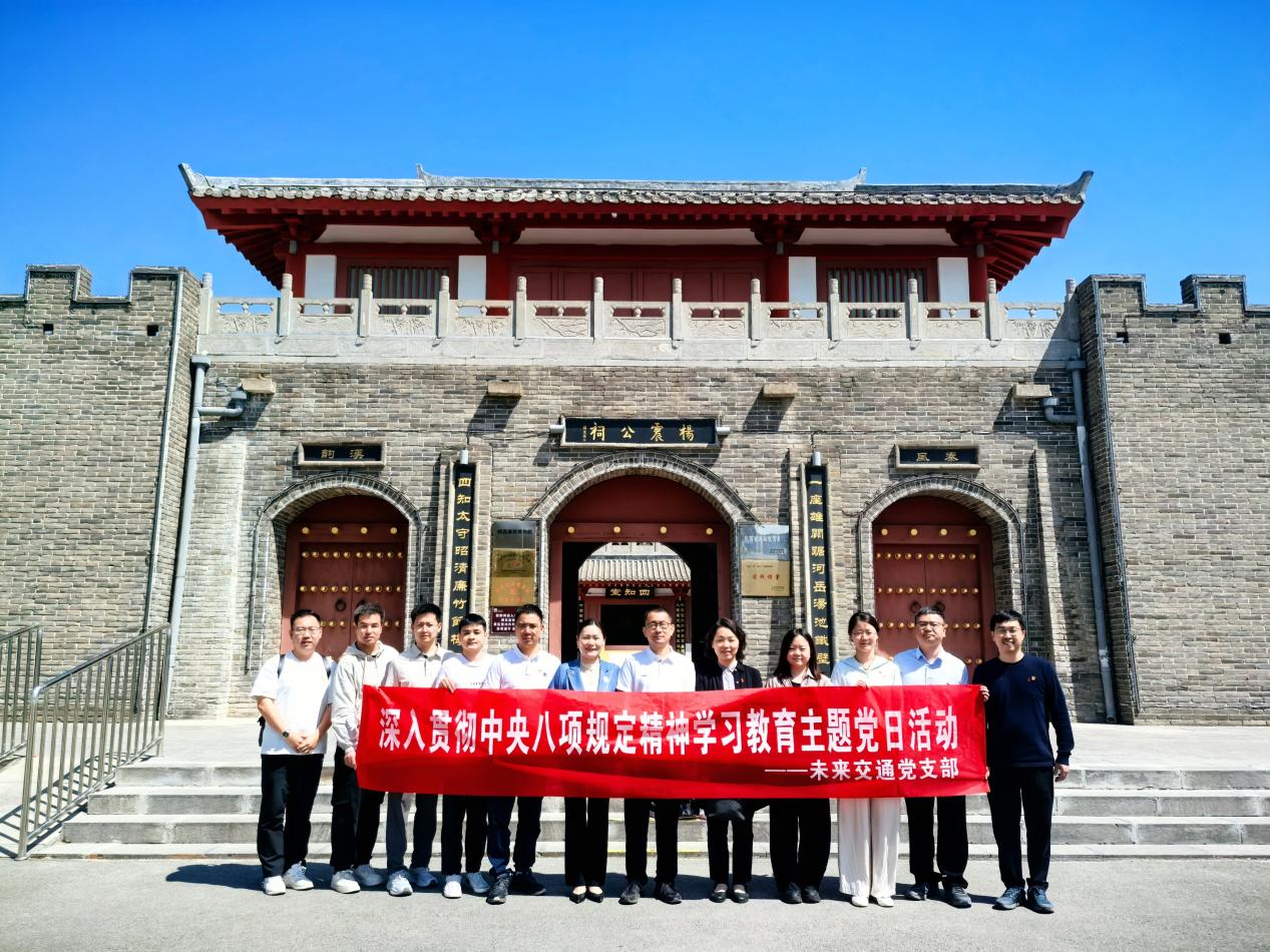 为推进深入贯彻中央八项规定精神学习教育走深走实,不断加强公司作风建设,4月28日,公司领导班子、科级干部、未来交通党支部支委、党小组组长及党员代表前往潼关县杨震廉政博物馆,开展“筑牢廉政原则,思悟作风建设”主题研学暨深入贯彻中央八项规定精神学习教育主题党日活动。