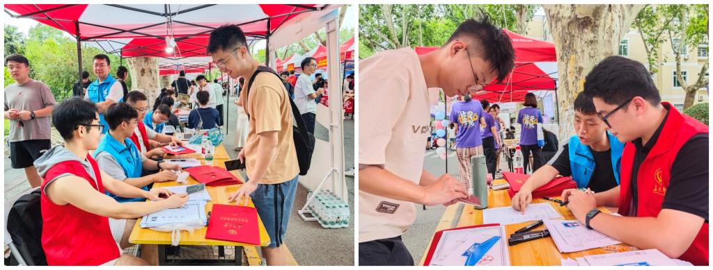 迎新过程中,员工党员主动发挥担当精神,积极参与迎新帐篷点的物资准备和布置,团结协作高效完成迎新准备工作。随着2025级新同学的到来,员工党员主动帮助新生搬运行李,引导新生完成报到流程,扫码注册、材料收集、信息核对,为新生报道保驾护航。“党员先锋岗”负责人季书贤表示,作为员工党员,通过先锋岗为新生服务,既践行了党员的初心,也让自己感受到了责任与价值,希望我们周到而热情的服务让新同学感受到归属感!