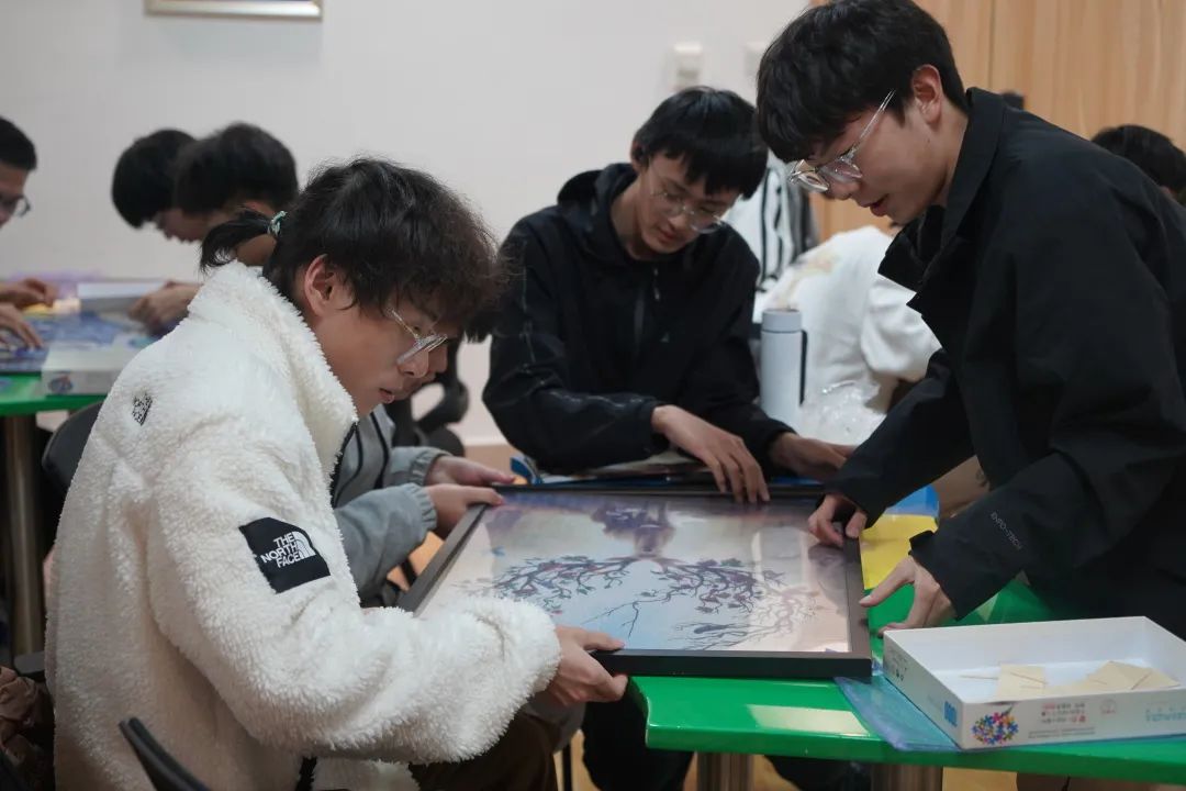在拼图环节,各宿舍选择了不同的挑战方式,宿舍成员们各司其职、分工协作,开启了一场“竞速大赛”。有宿舍选择逐一攻克,先集中拼图中的一部分;有宿舍分工明确,每一位同学负责自己的区域;还有的宿舍另辟蹊径,从拼图背面进行挑战。在一片欢声笑语中,大家度过了愉悦的拼图时光。