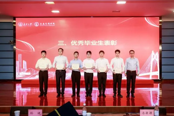执行经理孙健宣读优秀毕业生表彰名单并为优秀毕业生颁奖。希望全体毕业生向榜样学习、向先进看齐,怀抱梦想、脚踏实地,争做有理想、敢担当、能吃苦、肯奋斗的新时代好青年,为强国建设、民族复兴伟业贡献青春力量。