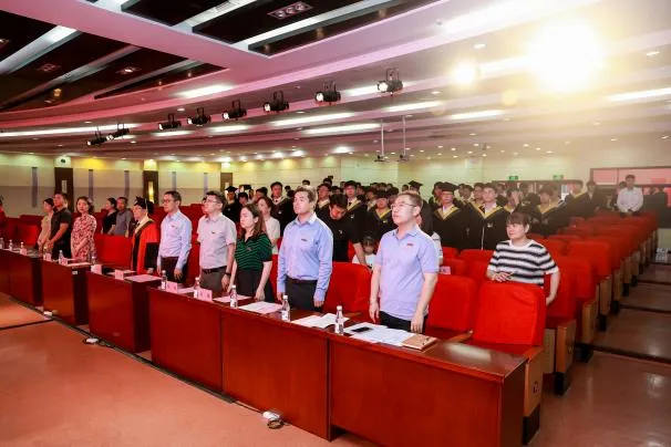 毕业典礼在庄严的国歌声中拉开了序幕。