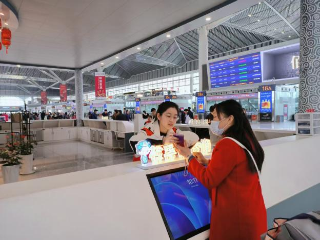 志愿者们根据工作人员的统筹安排,分组前往进站口、检票口、安检区、服务台等重点区域,以饱满的热情全身心投入志愿服务。在进站闸机处,志愿者们化身“暖心导航员”,密切关注乘客动态,主动上前,耐心解答疑问,辅导老年旅客使用智能设备,引导携带大件行李旅客通过无障碍通道,协助维持进站秩序。在扶梯安全岗,志愿者采用“前导后护”的方式,重点关注老人、儿童以及携带重物或婴儿车的旅客,保障旅客通行安全,累计协助50余位旅客安全乘梯,用暖心护航织就高铁出行的安全网。