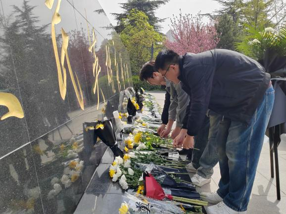 全体师生整齐列队于烈士纪念碑前。缅怀仪式由公司研究生会主席纪裕伟主持,全体师生肃立默哀,向为民族独立、人民解放献出生命的英烈致以崇高敬意。随后,老师及员工代表缓步上前敬献挽联,寄托对先烈的深切追思。