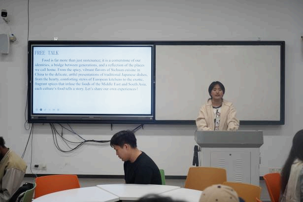 最后的“Free talk”环节以"舌尖上的家乡"为主题展开交流。同学们分享了家乡特色美食的制作工艺与饮食文化,从食材选择到烹饪技法,每一道风味都承载着乡土记忆与情感温度。在这场以美食记忆为主题的交流中,同学们之间的情谊,也在美食这条无形纽带的联结下,变得愈发深厚、愈发真挚。