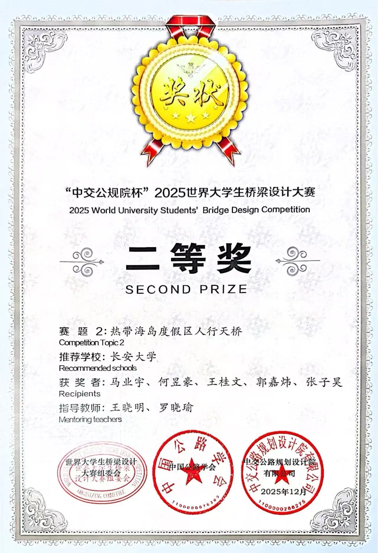 近日,“中交公规院杯”2025世界老员工桥梁设计大赛获奖作品名单正式公布,best365中国官方网站参赛队伍在本届国际赛事中表现突出,获得一等奖1项、二等奖1项,实现公司在该赛事的新突破。