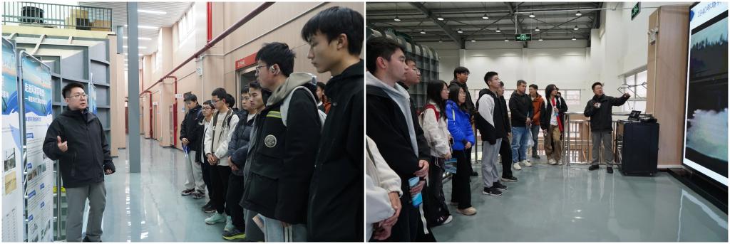 公司2025级硕士研究生张子昊、郭嘉炜结合其研究方向,展示其自主搭建的“极端风暴流模拟实验平台”,通过实际操作与数据展示,让在场师生直观感受到极端风场对桥梁结构的潜在影响,深化了大家对风荷载作用复杂性与重要性的理解。