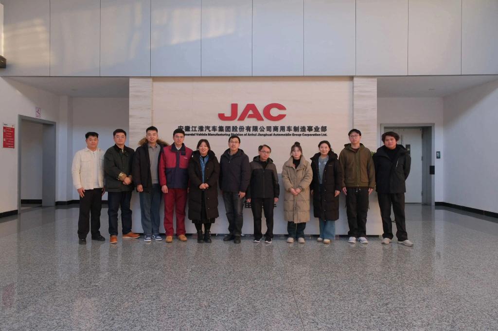 1月22日,田顺一行前往合肥市,参观走访江淮汽车集团新港基地。在参观江淮轻卡生产线过程中,田顺详细了解了企业生产流程与智能化建设情况。随后,田顺向企业人力资源部门负责人、员工代表了解招聘需求、流程等相关事项,重点介绍了公司近年来在人才培养机制方面的创新举措,并就毕业生核心能力需求进行了深入交流,希望为后续推动人才精准输送奠定基础。