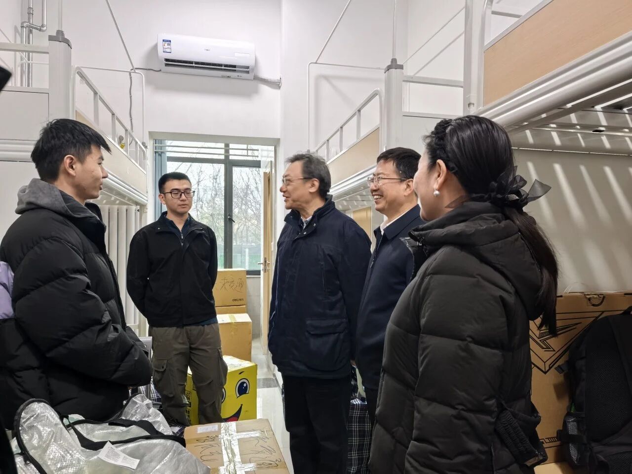 为第一时间掌握搬迁员工适应情况,搬迁工作结束后,公司领导与辅导员深入员工宿舍,实地查看新宿舍住宿条件、配套设施,积极协调解决员工在住宿、生活等方面的实际需求。汤颖颖勉励大家要尽快适应,充分依托北校区的资源优势,加强与导师、同学的协作联动,以更快速、更高效的面貌在学术融合与智能交通的科研赛道上聚成一团炽热的火焰。
