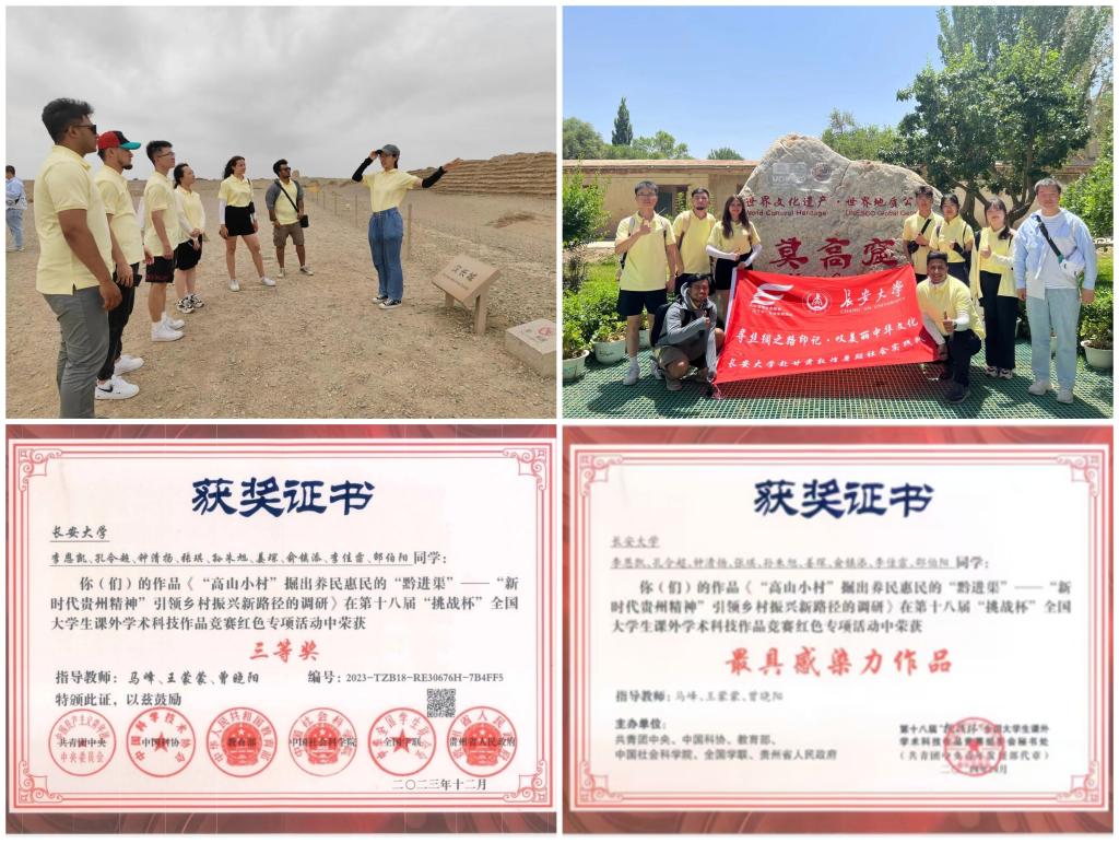 围绕“一带一路”倡议,她联合国际职工组队前往敦煌开展暑期社会实践,大力弘扬丝绸之路精神。围绕乡村振兴建设,她带队前往遵义深入调研乡村振兴发展成果,挖掘新时代长征精神的丰富内涵,凝练调研报告获评第十八届“挑战杯”全国老员工课外学术科技作品竞赛红色专项赛道三等奖、“最具感染力作品”奖(陕西省唯一),形成较大的社会反响。