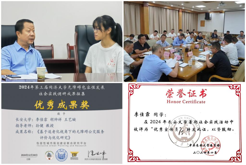 围绕学业专业发展,她带队前往汉中开展专业主题实践,聚焦老城区交通拥堵等现实问题,凝练实践成果,成果报告获共青团汉中市委和汉中市汉台区负责人等主要领导批示。把辛勤付出转换为成长收获,是李佳霏一直坚信的奋斗理念。结合多次实践调研,她撰写的论文成果在同济大学无障碍包容性发展社会实践调研成果征集大赛中获得一等奖,在第二十届全国老员工交通运输科技大赛中获省级三等奖。