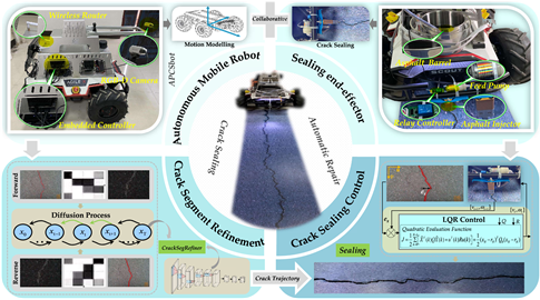 近日,公司杨旭教授团队在土木、交通领域国际顶级期刊《Automation in Construction》上发表研究论文“Vision-guided robot for automated pixel-level pavement crack sealing”(视觉引导机器人用于自动像素级路面裂缝灌缝修复)。该研究得到了国家重点研发计划和国家自然科学基金的资助。公司博士生张建奇为论文的第一作者,杨旭教授为论文通讯作者。