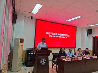 研究生导师代表戴涛副教授发言。他指出健康的身体是科学研究不可或缺之基石,只有身心俱佳才能产出卓越的科研成果;他建议同学们重视每一次组会,不断梳理、完善科研逻辑;他表明团队合作的重要性,鼓励大家集思广益,相护支持与协作。他还强调学术规范和科学道德的重要意义,呼吁大家坚守学术诚信,杜绝学术不端。